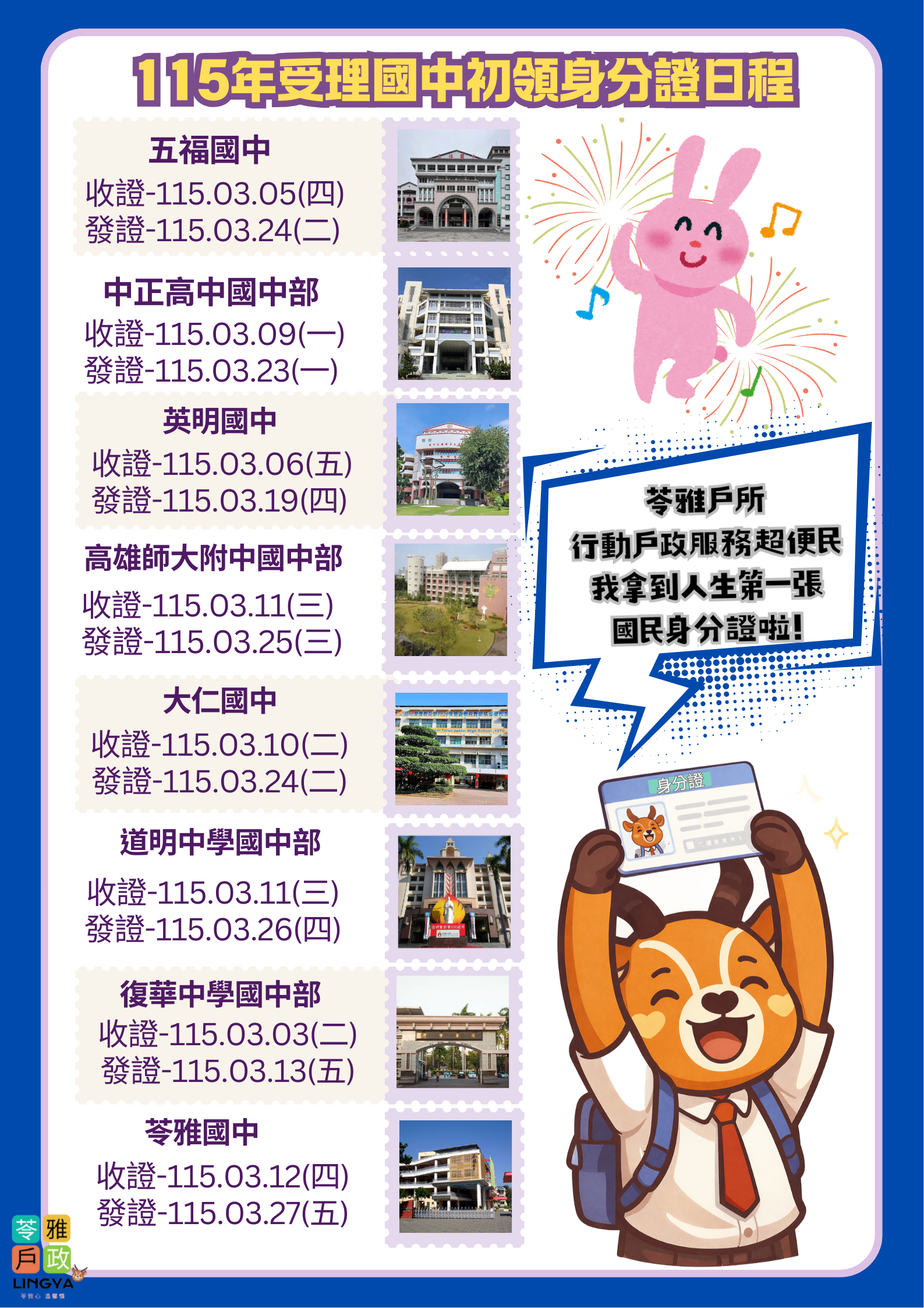 凡就讀本區年滿14歲國中三年級(九年級)生尚未請領(初領)國民身分證之學生,